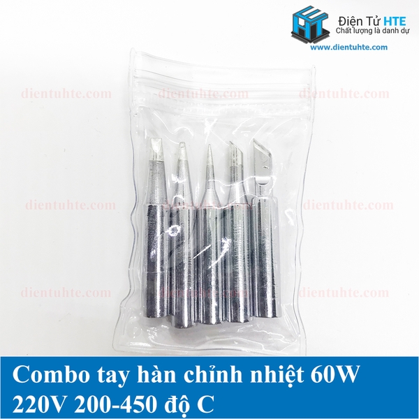 Đi kèm tay hàn là bộ 5 mũi hàn các loại giúp sử dụng tốt trong nhiều trường hợp. Ngoài ra bộ sản phẩm còn bao gồm hộp nhựa thông khô nhỏ giúp dễ dàng hàn linh kiện.