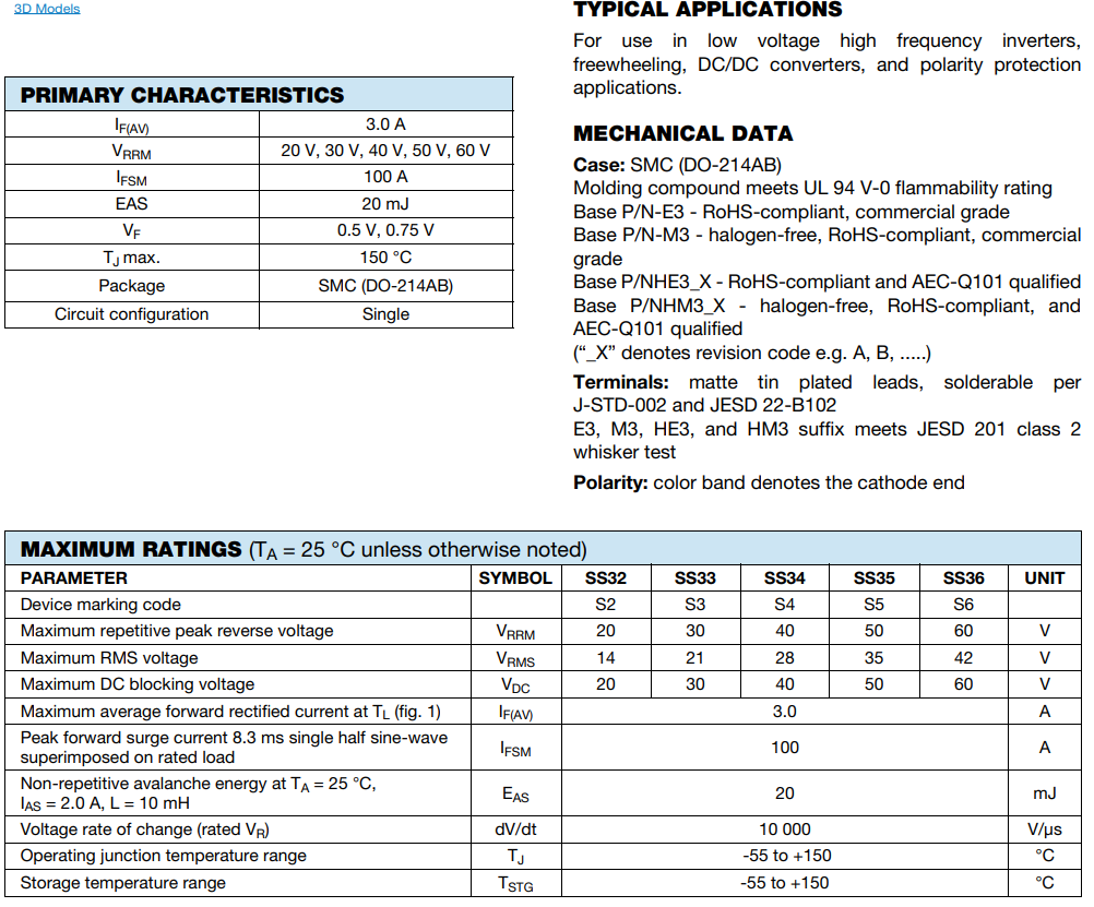 Diode SS34 (dòng Diode Shottky) là một Diode bán dẫn với một điện áp rơi phân cực thuận thấp và ngắt rất nhanh