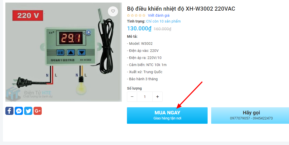 Bước 2: Chọn sản phẩm cần mua, Hệ thống chuyển sang trang Thông tin chi tiết về sản phẩm, quý khách chọn Mua ngay để thêm sản phẩm vào giỏ hàng.