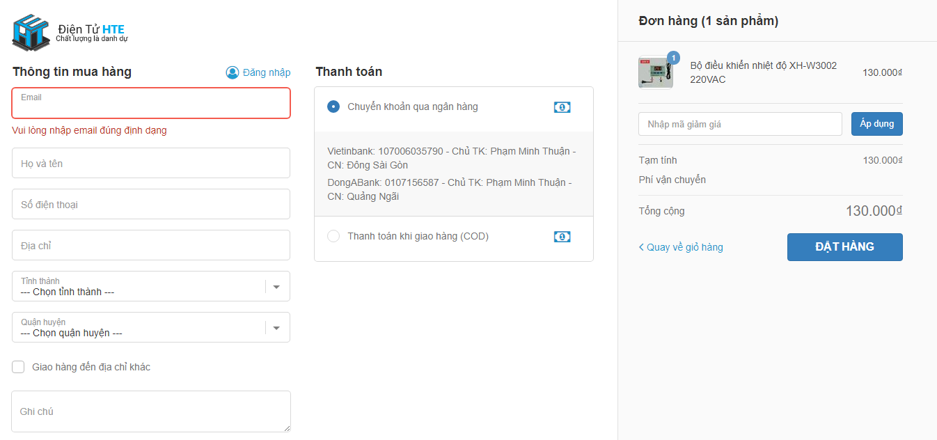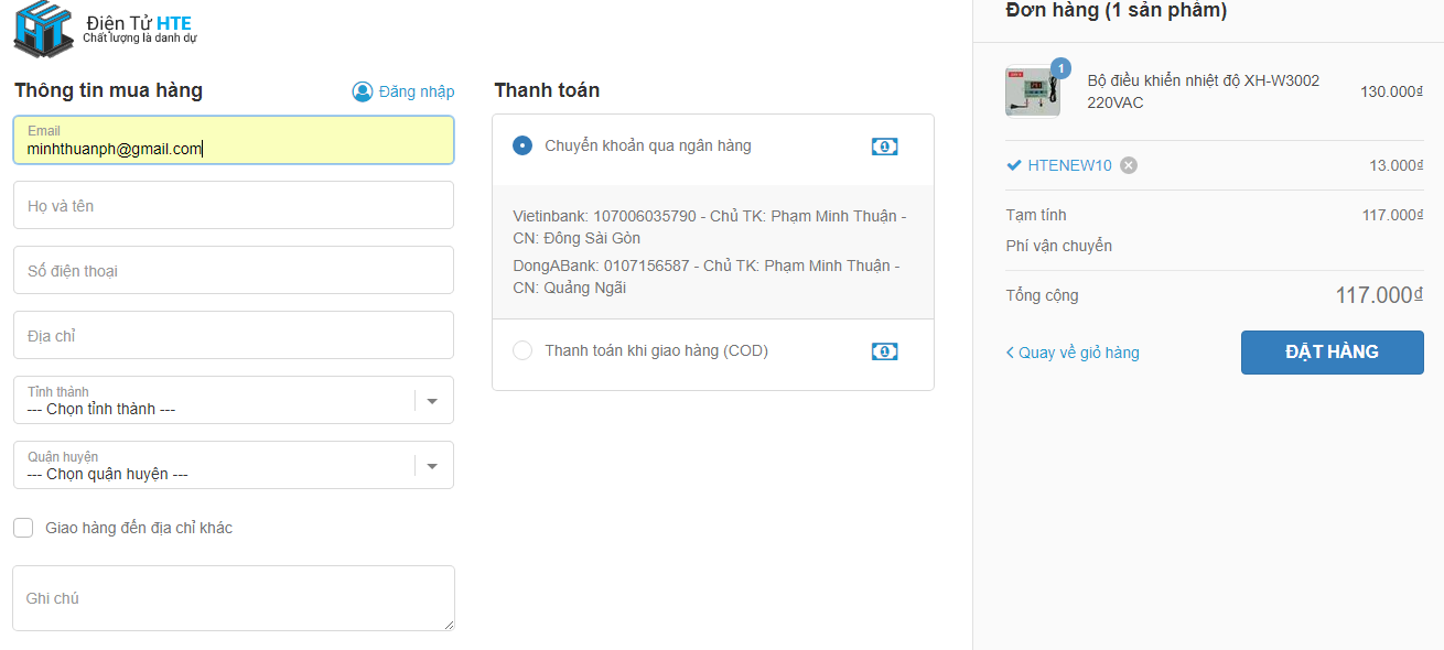 Bước 3: Tiến hành đặt hàng.