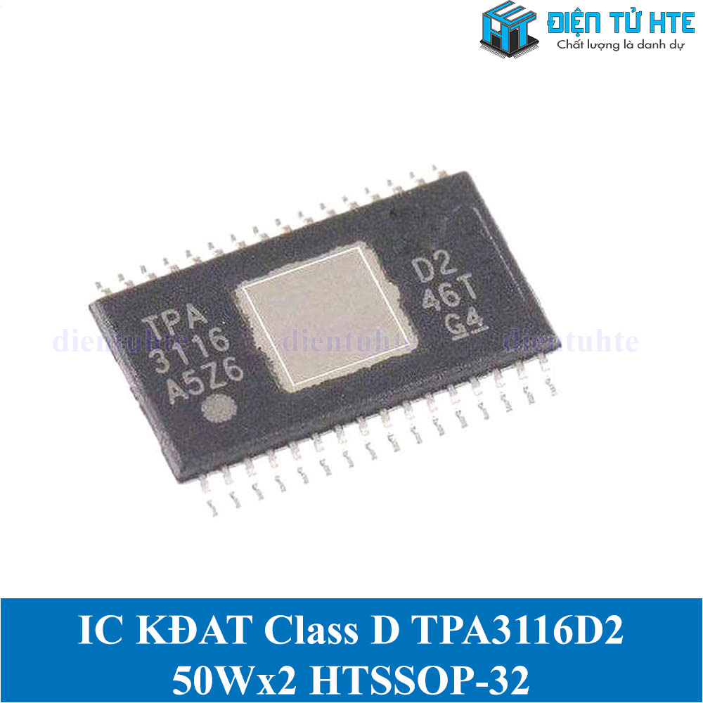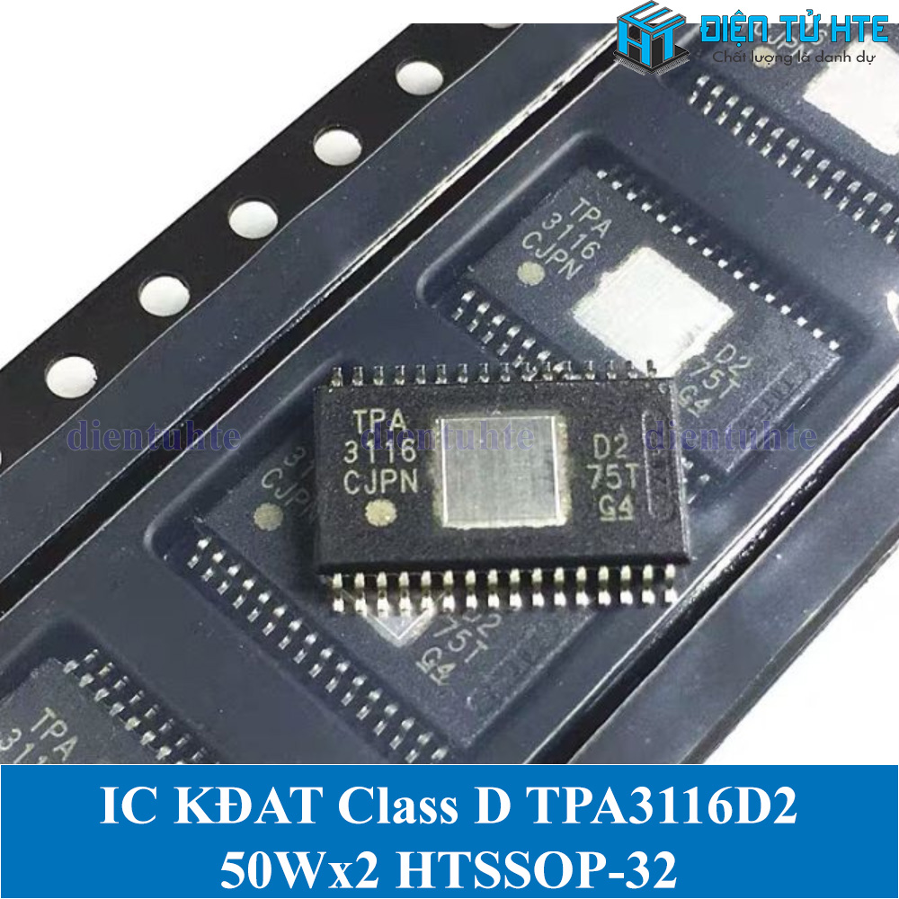 TPA3116D2 là dòng IC khuếch đại âm thanh Class D, ngõ ra 2 kênh tối đa 50W/kênh.