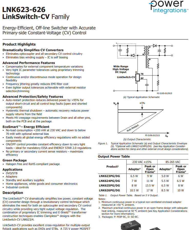 IC nguồn xung LNK626 sử dụng nhiều trong các mạch nguồn điều khiển của các thiết bị điện tử, điện lạnh, điện gia dụng như điều hòa, quạt điện tử, bếp điện....
