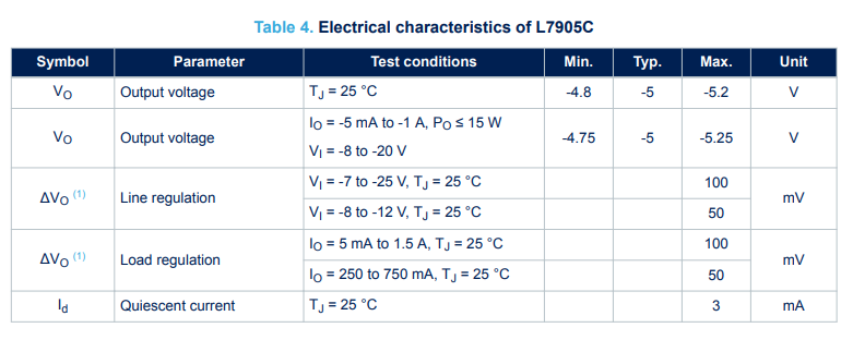 - Điện áp ra: -5V ± 0.2V