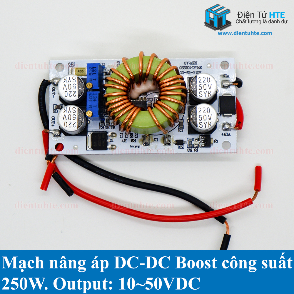 Mạch có chức năng tăng điện áp ngõ vào với công suất tải tối đa lên đến 250W, phù hợp sử dụng làm driver cấp nguồn cho led, sạc Pin laptop, cấp nguồn laptop và nhiều ứng dụng khác