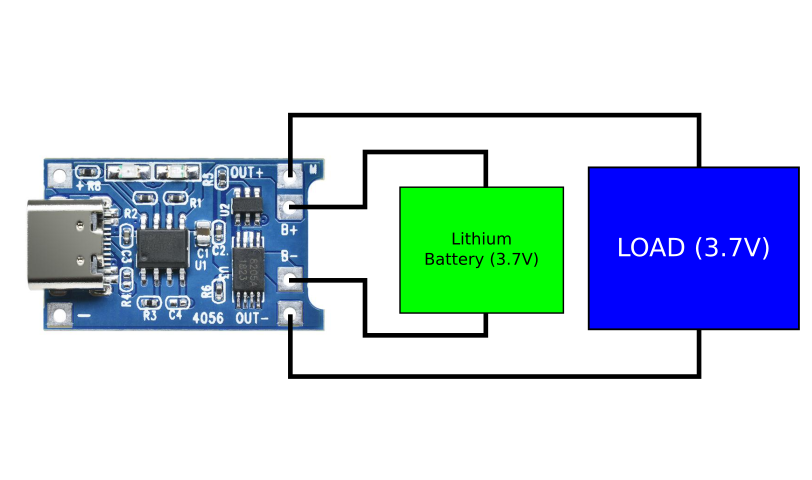 - Khi pin được kết nối lần đầu tiên, có thể không có đầu ra điện áp giữa OUT + và OUT – .Trong trường hợp này, mạch bảo vệ có thể được kích hoạt bằng cách sạc điện áp 5V, và khi pin bị ngắn mạch từ B + B-. Lưu ý rằng bộ sạc phải 1A trở lên, nếu không nó có thể không sạc đúng cách