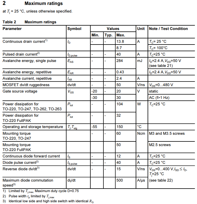 - Dòng tải liên tục: 13.8A (tại 25 độ C), 8.7A (tại 100 độ C)