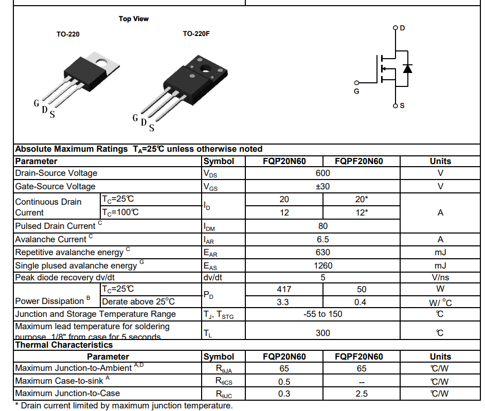 N-MOSFET công suất 20N60 FQP20N60C 20A 600V TO-220