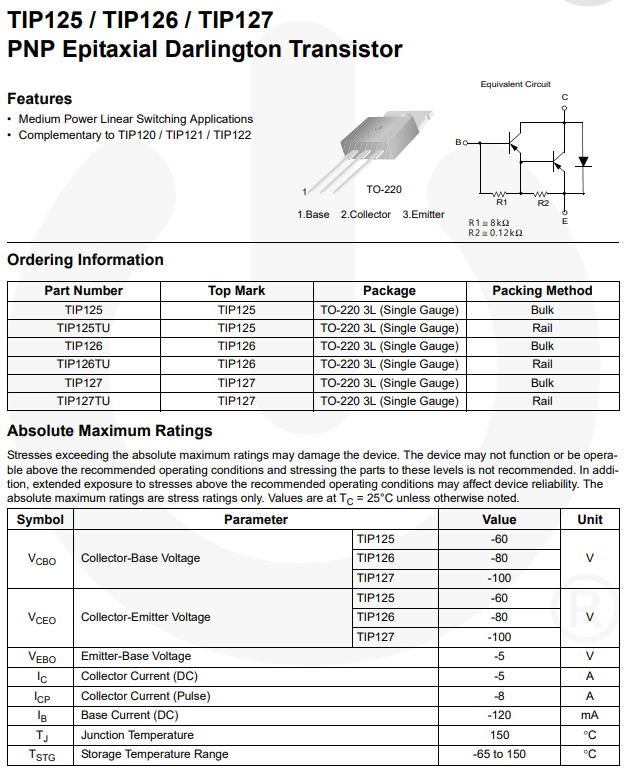 [THÁO MÁY] Transistor Darlington PNP TIP127 5A 100V TO-220