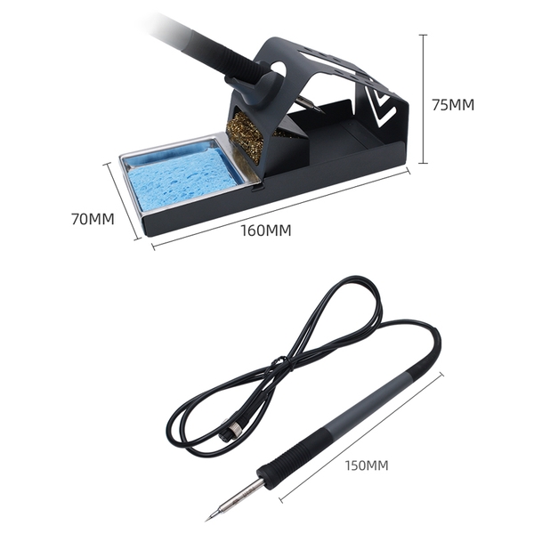 - 1 đế gác tay hàn: có khe cắm mũi hàn và khay đựng nhựa thông / chì