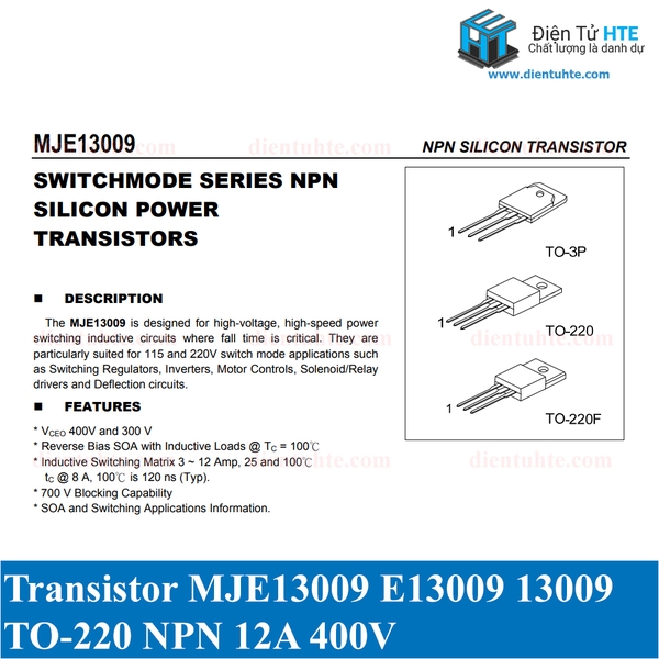 Transistor công suất JE13009 E13009 13009 400V 12A TO-220