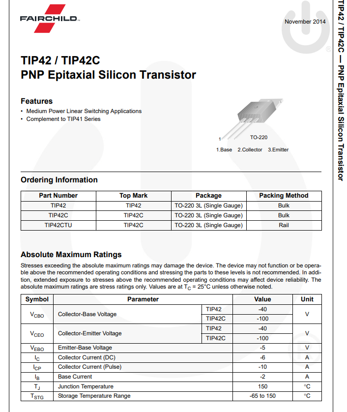 Transistor công suất PNP TIP42C 100V 6A TO-220