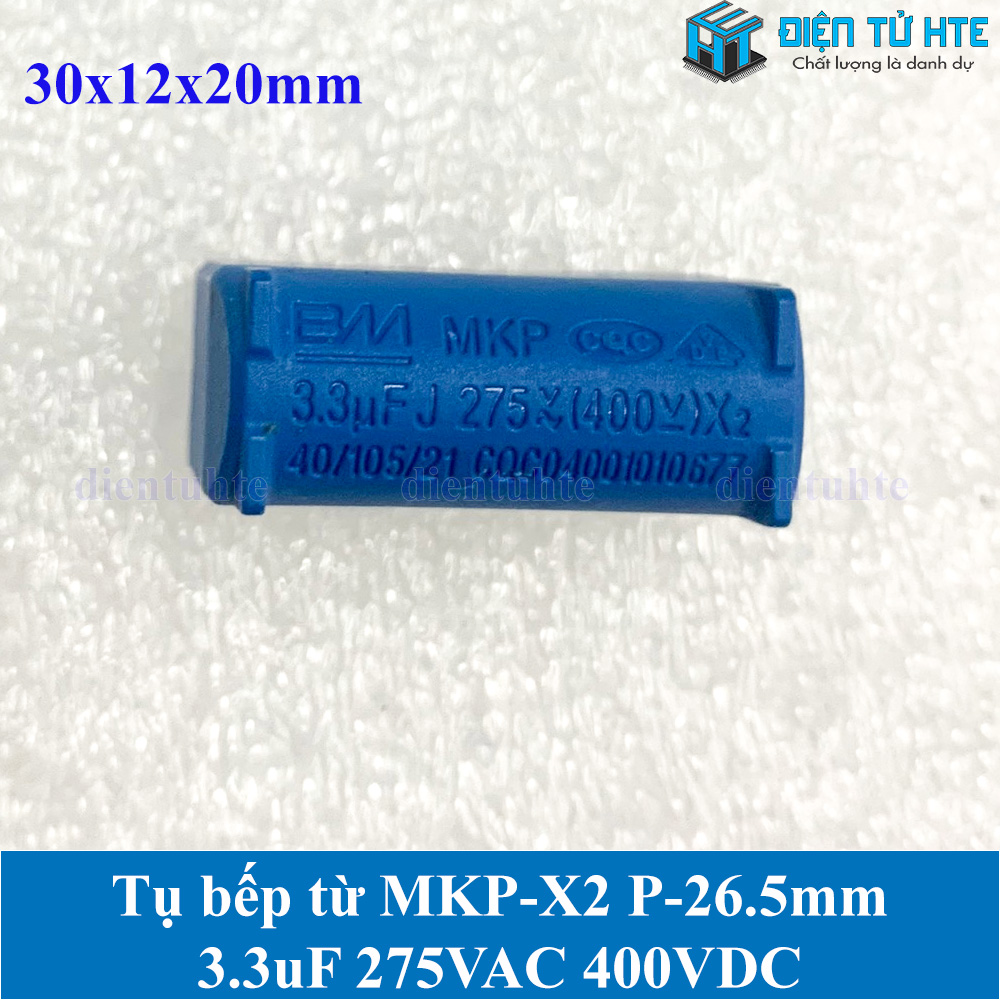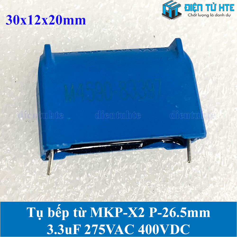 Tụ bếp từ MKP-X2 3.3uF 275VAC 400VDC pitch 26.5mm Xanh dương size 30x12x20mm