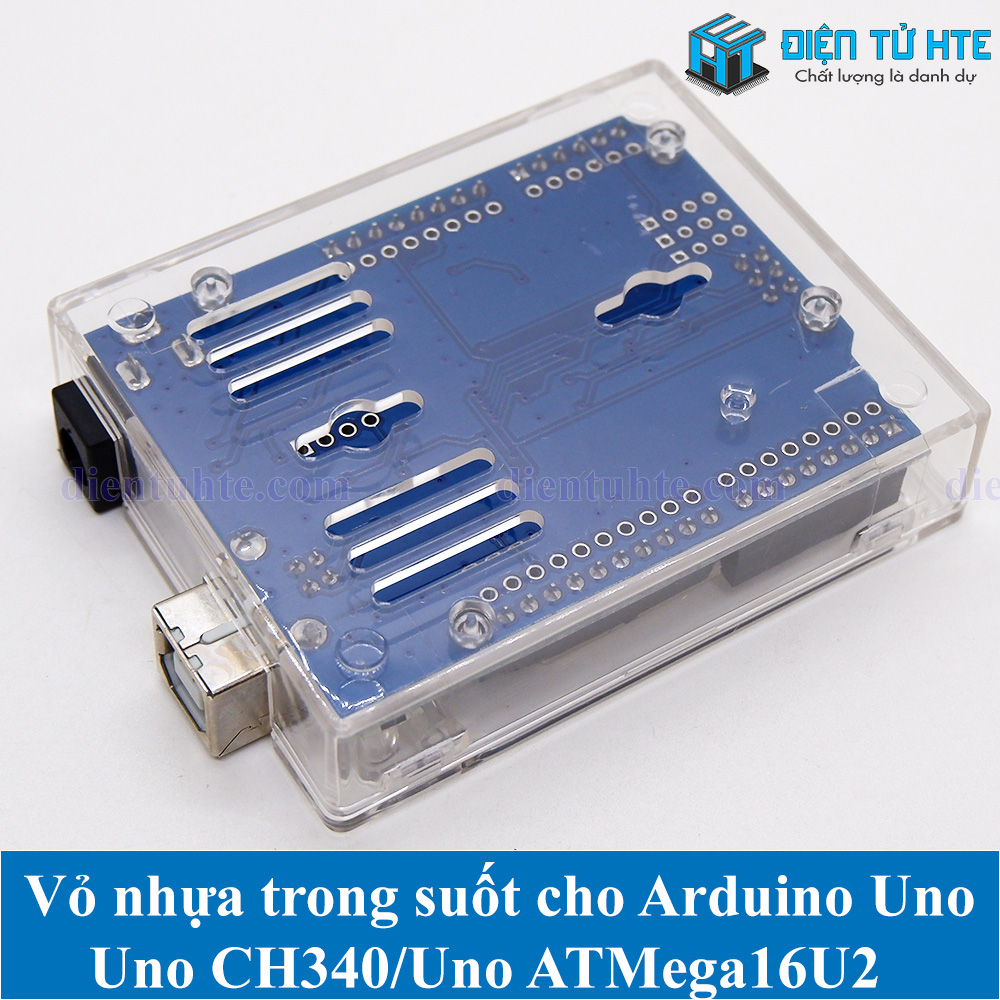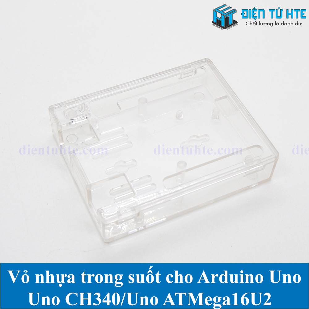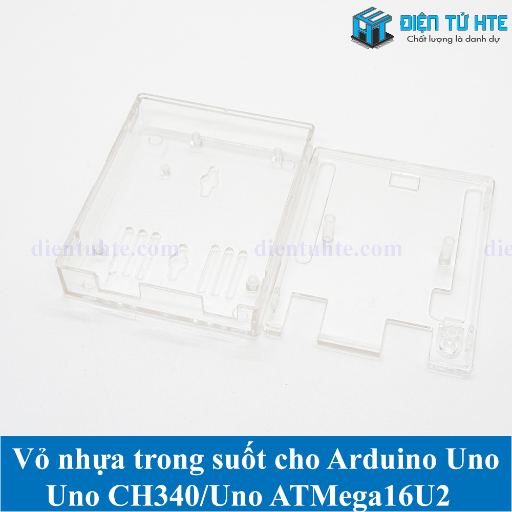 Vỏ nhựa Arduino Uno R3 được thiết kế vừa vặn với Arduino Uno R3, có chừa ra sẵn các cổng kết nối và chân IO để thuận tiện cắm test các cảm biến, mạch điện khác.